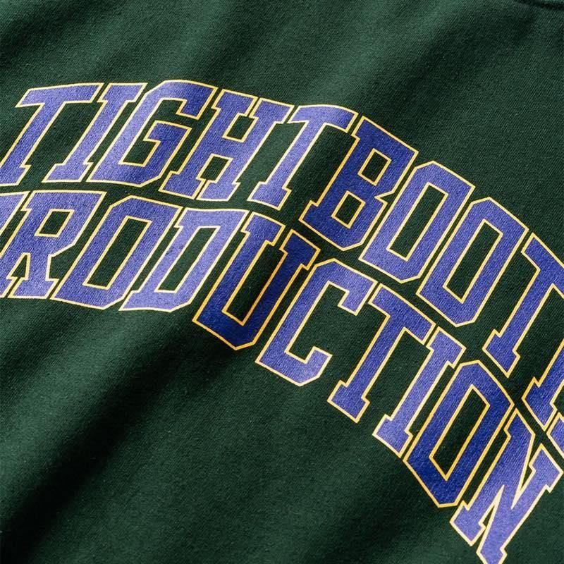 カレッジロゴをシルクプリントしたクルースウェット。 GILDANの8 oz裏起毛スウェットを使用。 使用するボディサイズは一段階ズラして使用。