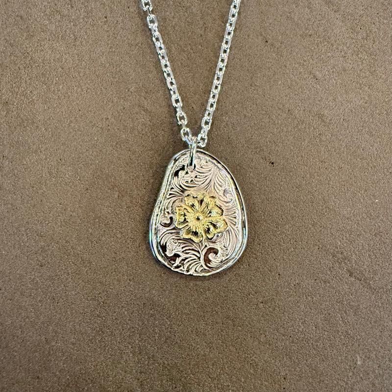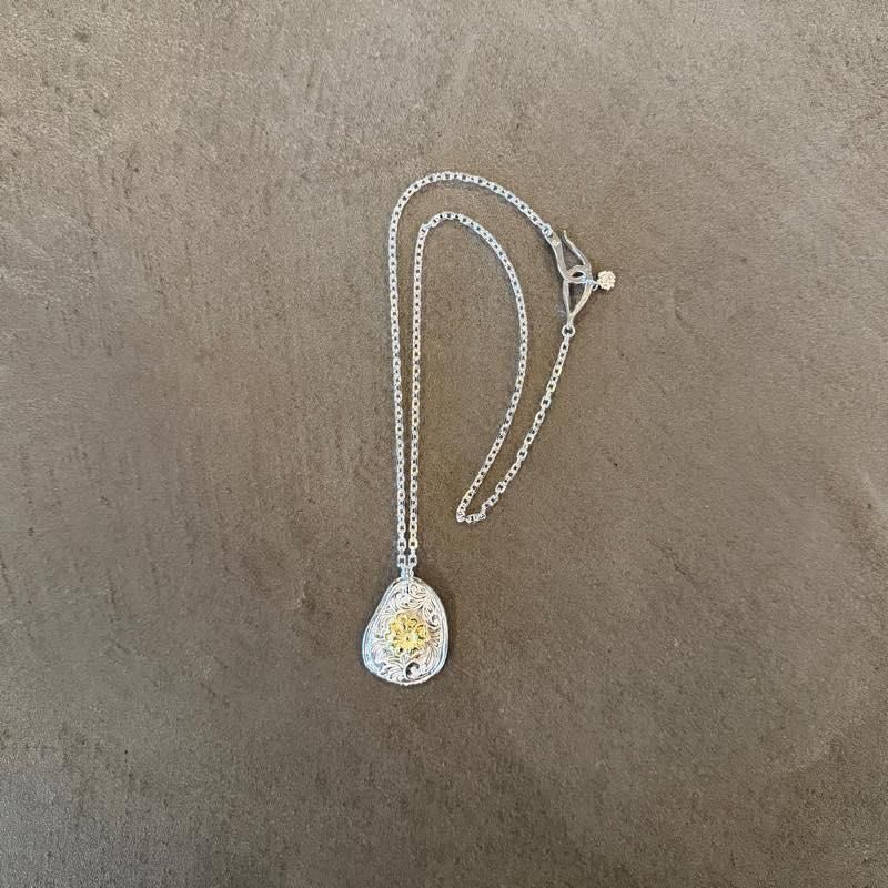 KARAKUSA ROSE OVAL PENDANTのコンビネーションネックレスです。ROSE W/DIA END INFINITY HOOK CABLE CHAIN(M)の60cmを使用しております。