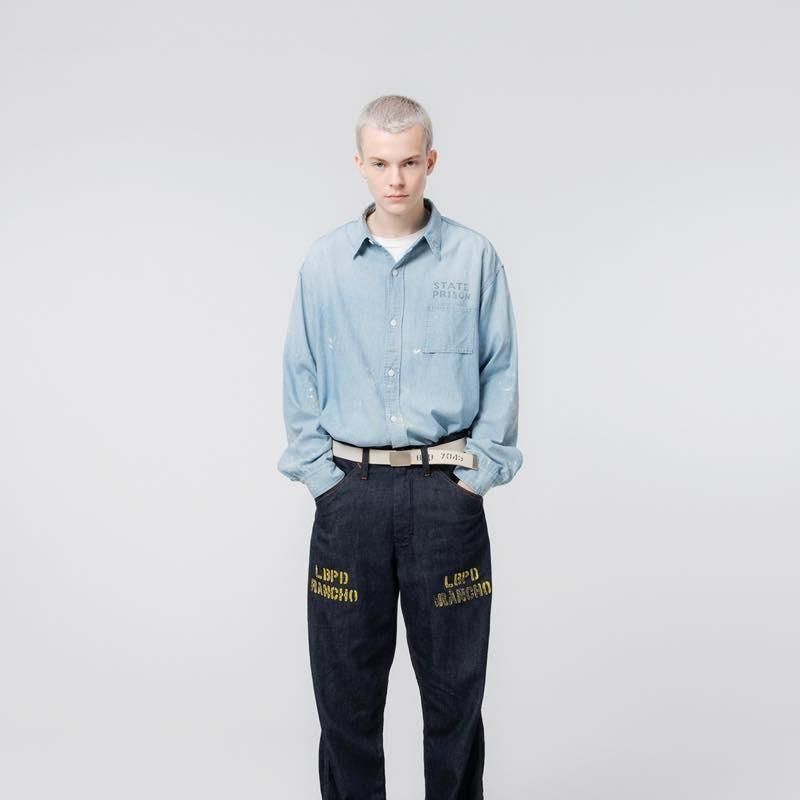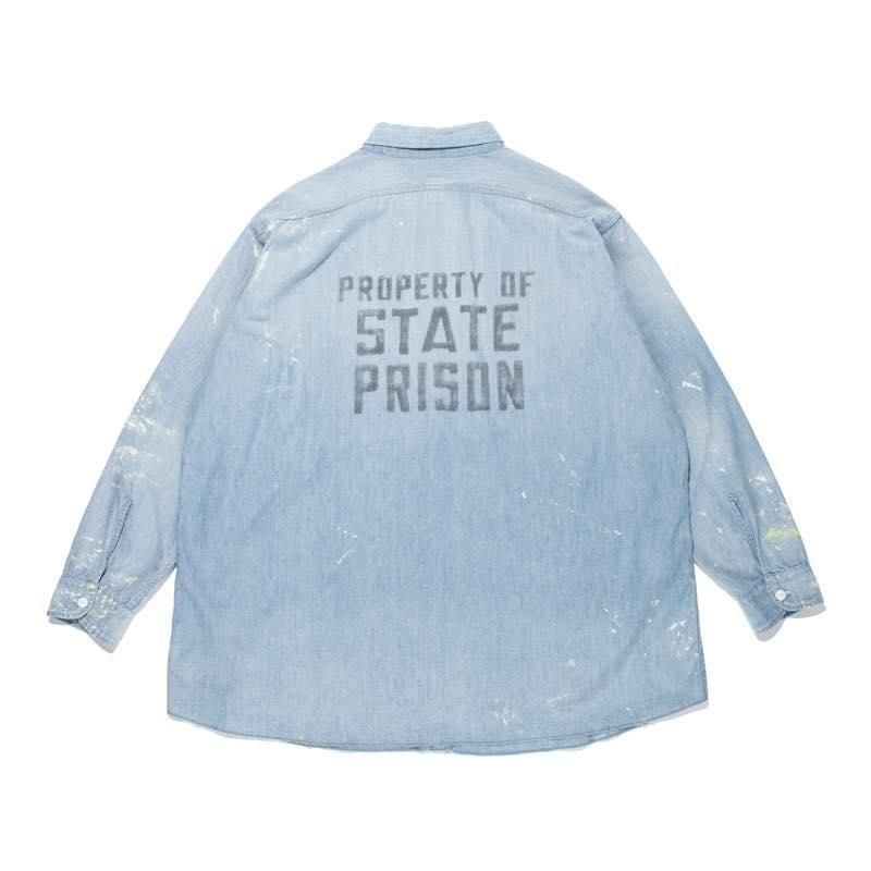 1960年代、アメリカの刑務所で着用されていたプリズナーシャンブレーシャツ。PROPERTY OF STATE PRISONプリントにより別格のオーラを放つ。 本来、刑務所内で使用されたものが外に出ることはなく、その希少性からヴィンテージ市場でも高い人気を誇ります。本作は、当時の雰囲気やディテールを忠実に再現しつつ、BOW WOW特有のやや大きめなシルエット、加工表現に仕上げました。