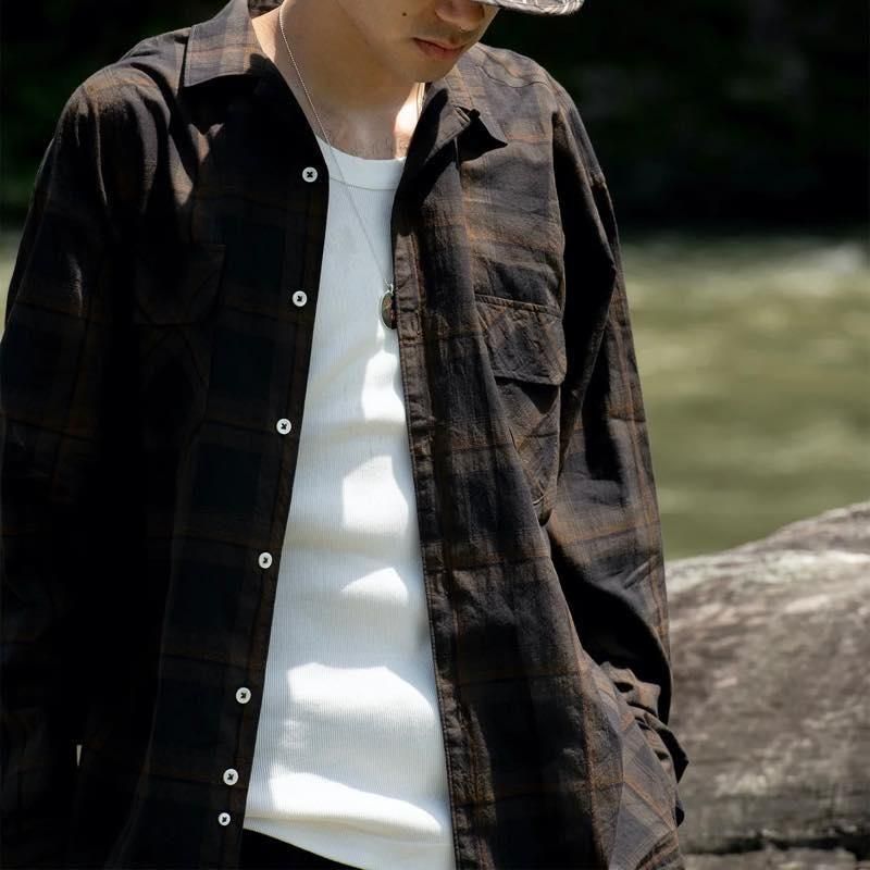 最近マドラスチェックに惹かれている。よくある明るいマドラスじゃなくてダークトーンの組み合わせなら、なお良い。そんなマドラスがないかと探し求めて見つけたオーガニックコットンのマドラス生地。ほんとは本場のインド製がいいのだけど、日本のマドラスもなかなかのもの。そんな生地でオープンカラーのシャツを作った。さらっとしていて肌に張り付かず、日除けにもなるので案外真夏でも着れそう。