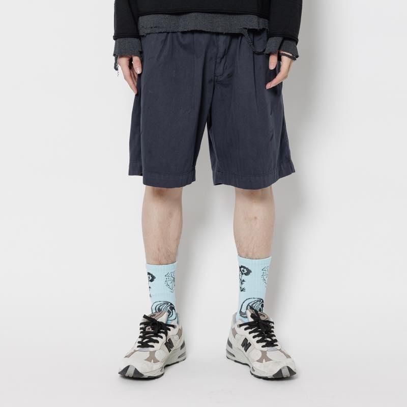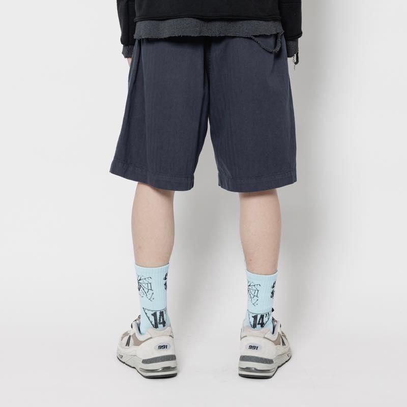 オリジナルで製作したグルカショーツになります。風合いの良いコットンへリンボン生地を使用。製品染加工とウォッシュ加工にて古着のような風合いを表現。ハンドペンキ加工。フロントジッパー仕様