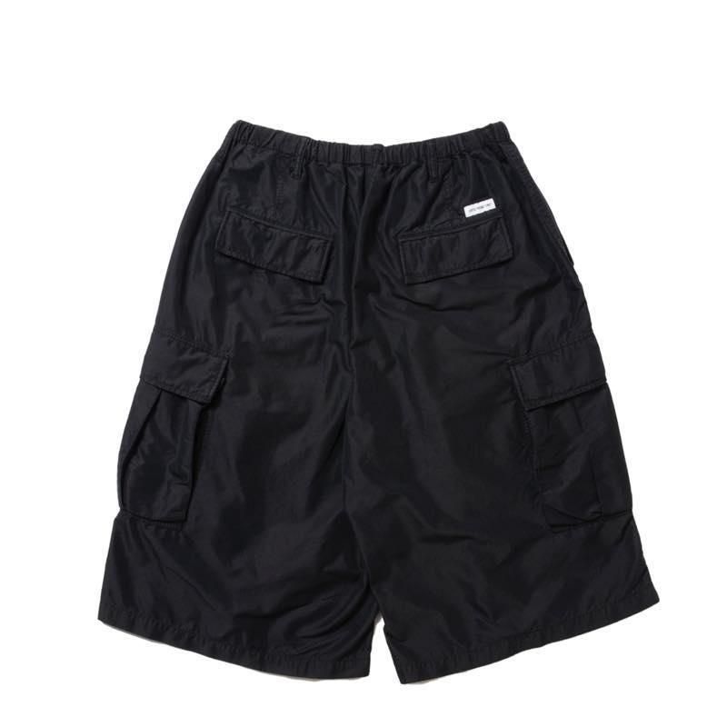 硫化染めコットンとリサイクルナイロンで織り上げられたオリジナルファブリックのポプリン生地を使用し製作しました。淡い光沢と加工による独特の色味が特徴です。ドローストリングのイージー仕様で前開き有り。膝にタックが入るワイドシルエットになります。製品Wash加工。