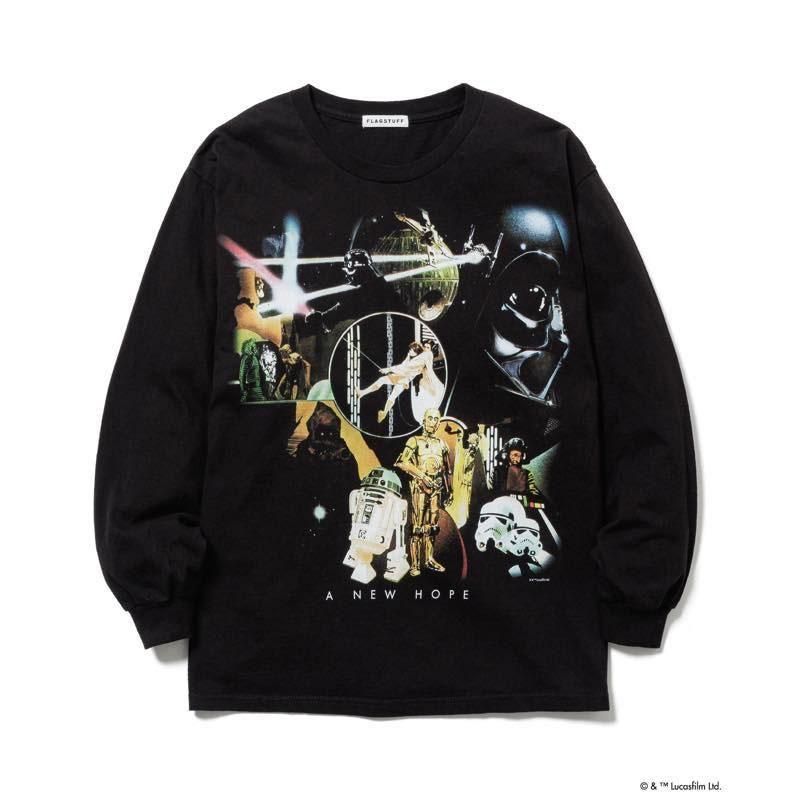STAR WARSとのコラボレーションしたロングスリーブTシャツになります。6オンスの空紡糸丸胴ボディを使用。表インクジェットプリント、裏はシルクスクリーンプリントを施しました。