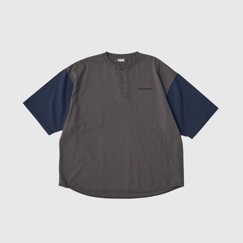 毎日Tシャツを着ているとたまには他のアイテムも着たいなという気持ちがふつふつと湧いてきて、昔から作ってみたかったヘンリーネックのTシャツを作った。イギリスのボート競技が発祥のようで、日本では肌着のイメージが強いアイテムだと思っていたら案外由緒正しいという事を知った。そう聞くと釦を開けて着た時にもちょっとだけセクシーさがあるような気がしてきたので着こなしのバリエーションも広がりそう。左胸にはレトロアウトドアっぽい雰囲気のロゴ刺繍入り。