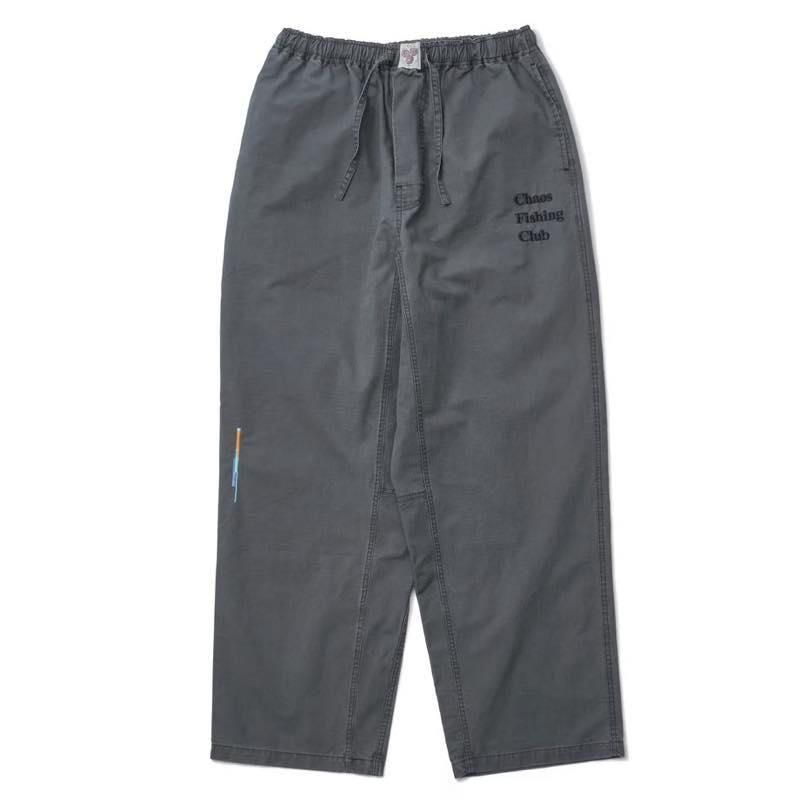 SAY HELLOとのコラボレーションアイテム。 SAY HELLOで人気のボトムをベースにChaos Fishing Clubのロゴを左ポケット下に刺繍でいれております。 また、シャツと同様にカラフルな刺繍もはいります。 ウエストはゴムとスピンドルでアジャスト可能です。