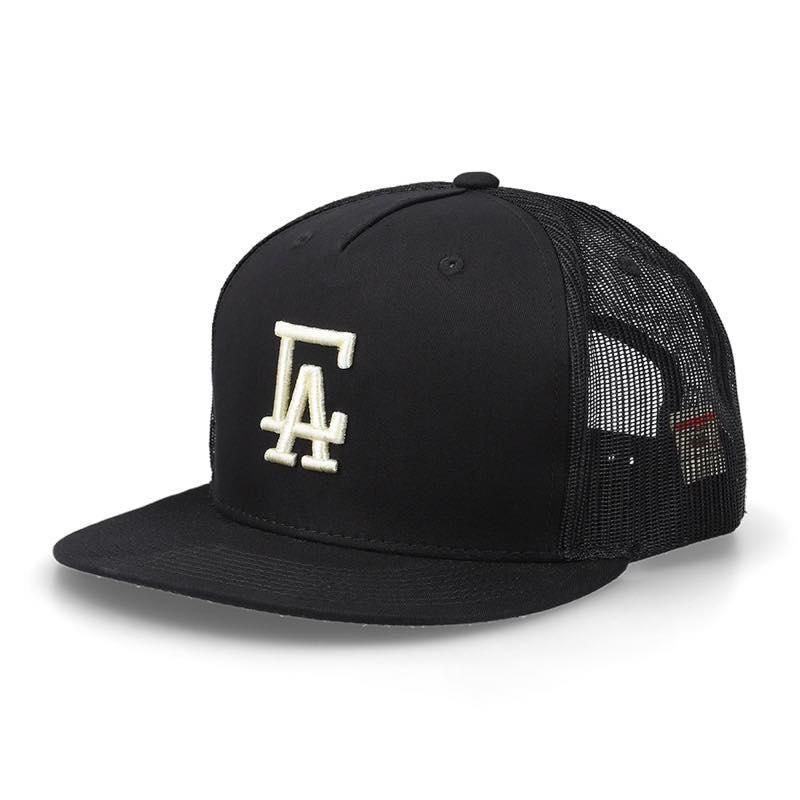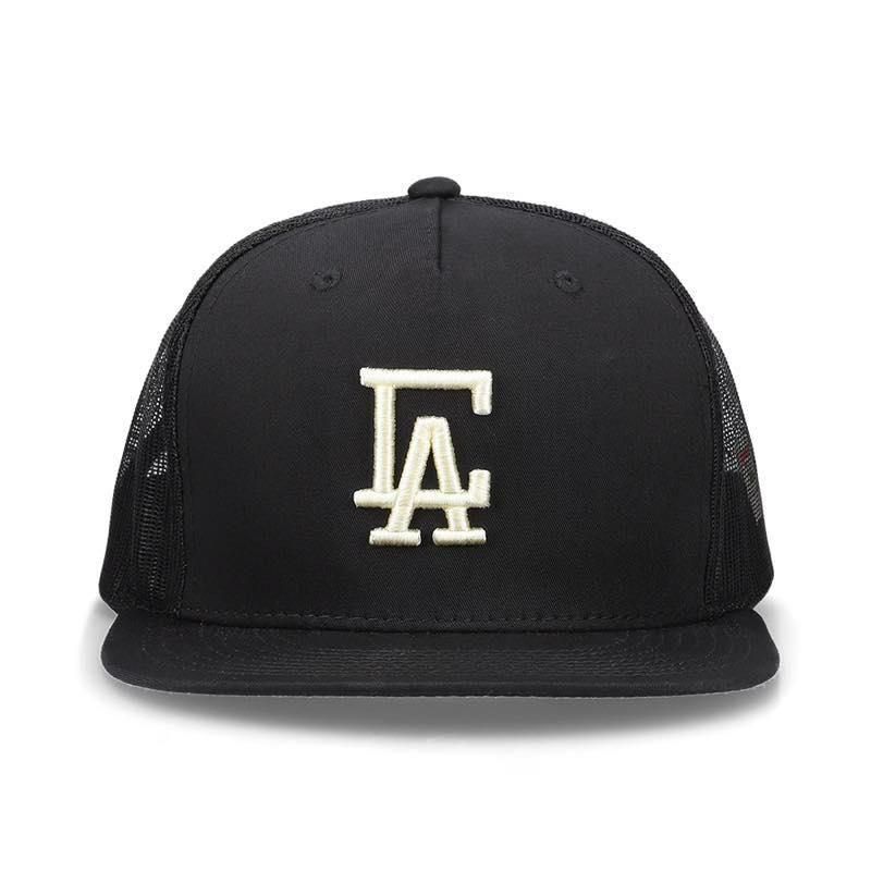 CALIFOLKSのベースボールキャップです。 フラットバイザーのメッシュキャップ、フロントにはアイコンのCAロゴを3D刺繍で施しています。