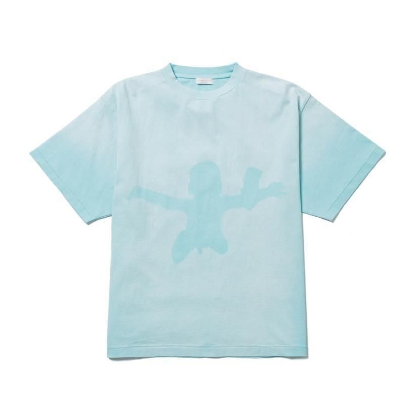 8.1oz 空紡糸をハードに編み込んだ度詰め天竺を採用。空紡糸を使い、繊維の間に空間を生むことで、ごわごわとした古着の風合いを再現しました。手作業スプレー加工によりサンフェードを表現。特殊な加工でモチーフを表現している