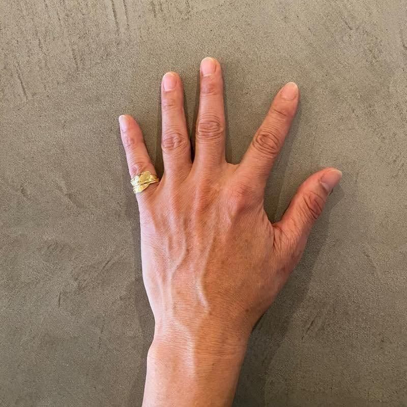 18K風切りフェザーのピンキーリングになります。小指にオススメなサイズ感で経年変化に伴って独特な表情を楽しめます。