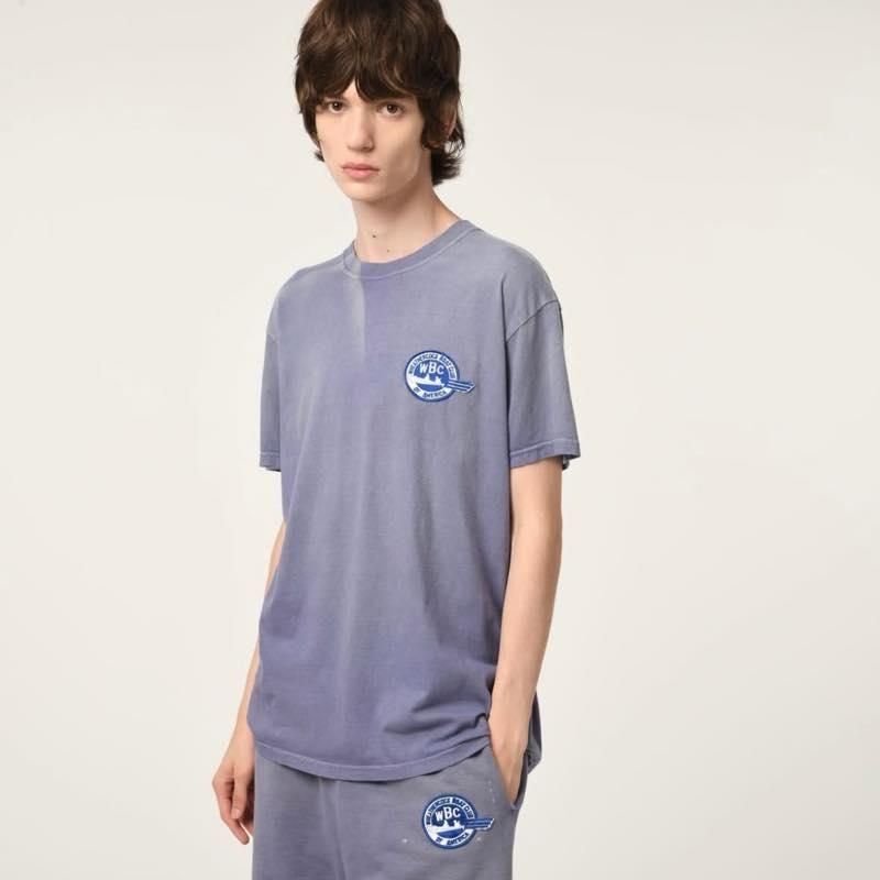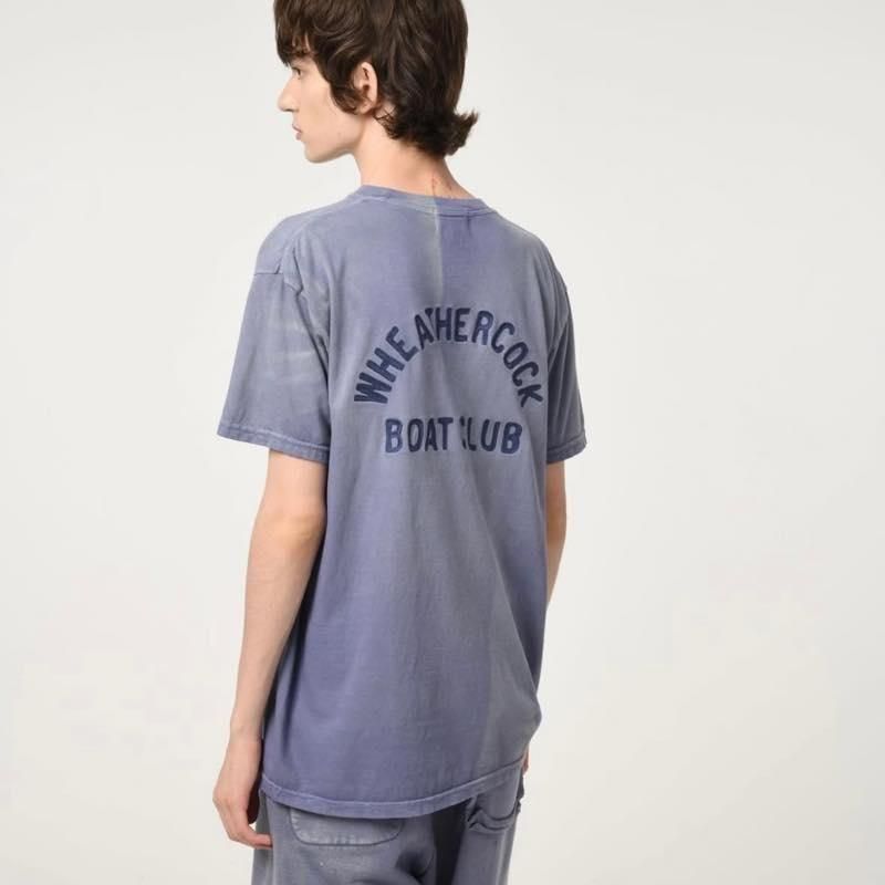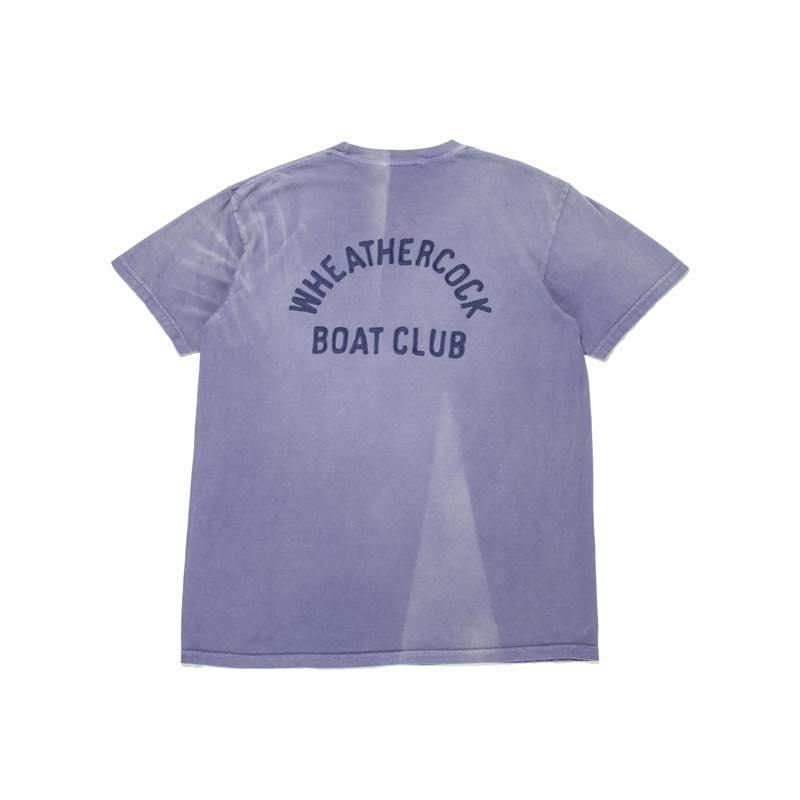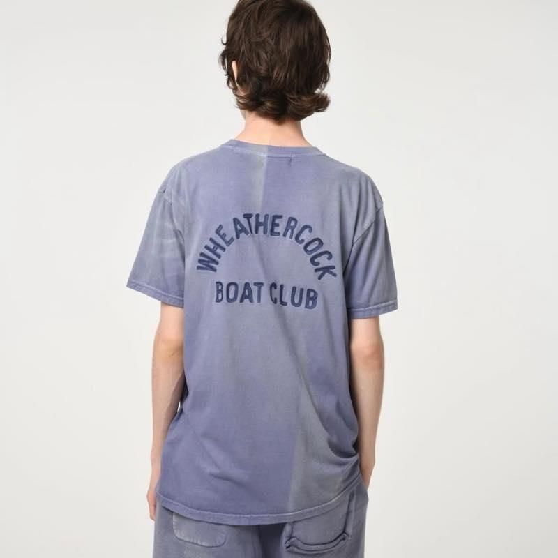 1950年代頃からアメリカでは、カジュアルファッションを楽しむ富裕層が増え、水辺でのスポーツが盛んになりました。それに伴い、カジュアルウェアにもその要素が取り入れられ、多くの優れたアイテムが誕生しました。ヴィンテージ市場ではまだ注目されていませんが、素晴らしいウェアが多数存在します。そんな背景をイメージし、「WEATHERVANE BOAT CLUB」と名付けたボートクラブコレクションを製作。海辺の着用で日焼けしたTシャツをイメージし製作。ボートクラブの皆で着用したイメージでチーム名を背面に刺繍。