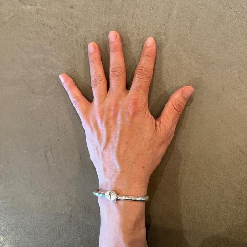 京都の縄職人とコラボされた「むすび」シリーズのバングルになります。シンプルですが経年変化に伴って独特な表情を楽しめます。