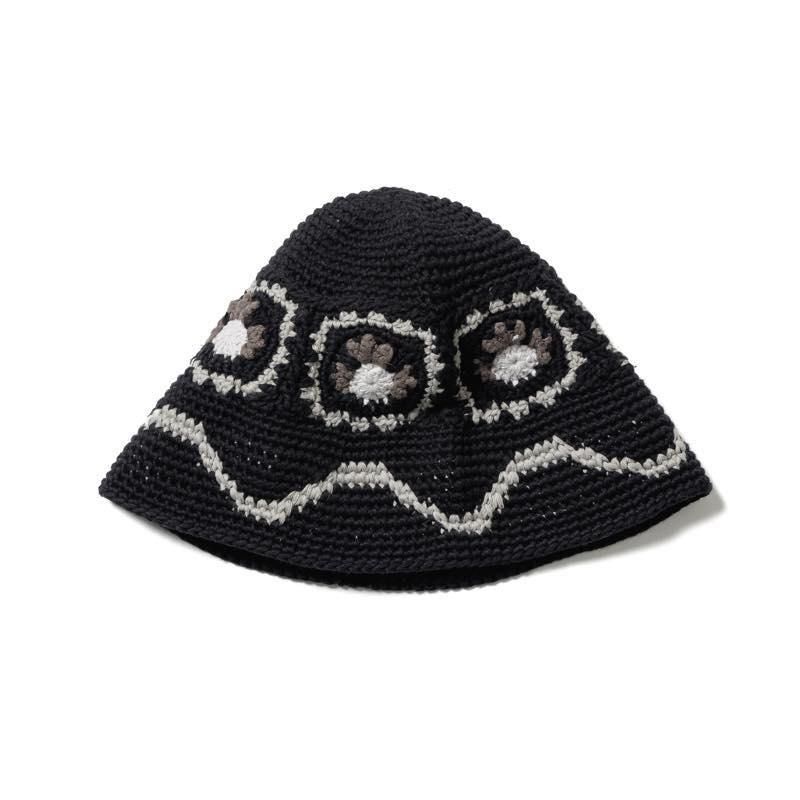 かぎ針編みのクラッシャーハットになります。某アニメのキャラクターを模した柄がアクセント。深めな角度のブリム。