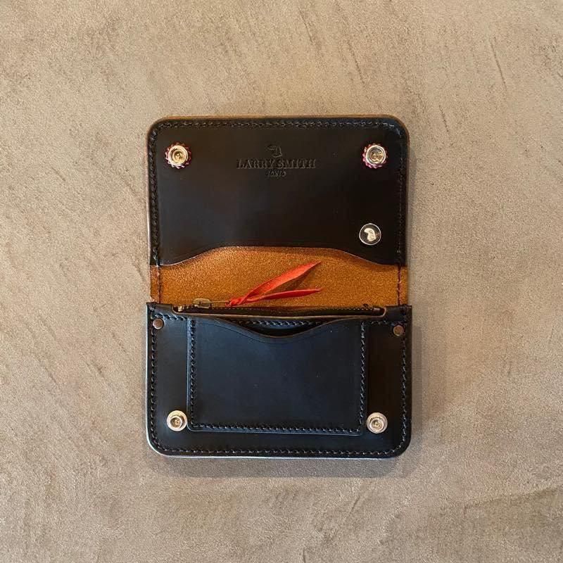 TRUCKERS Walletのスモールサイズの財布になります。シェルコンチョがカスタムされております。シンプルですが経年変化に伴って独特な表情を楽しめます。