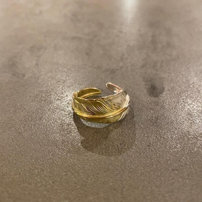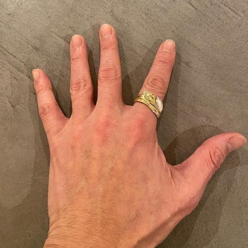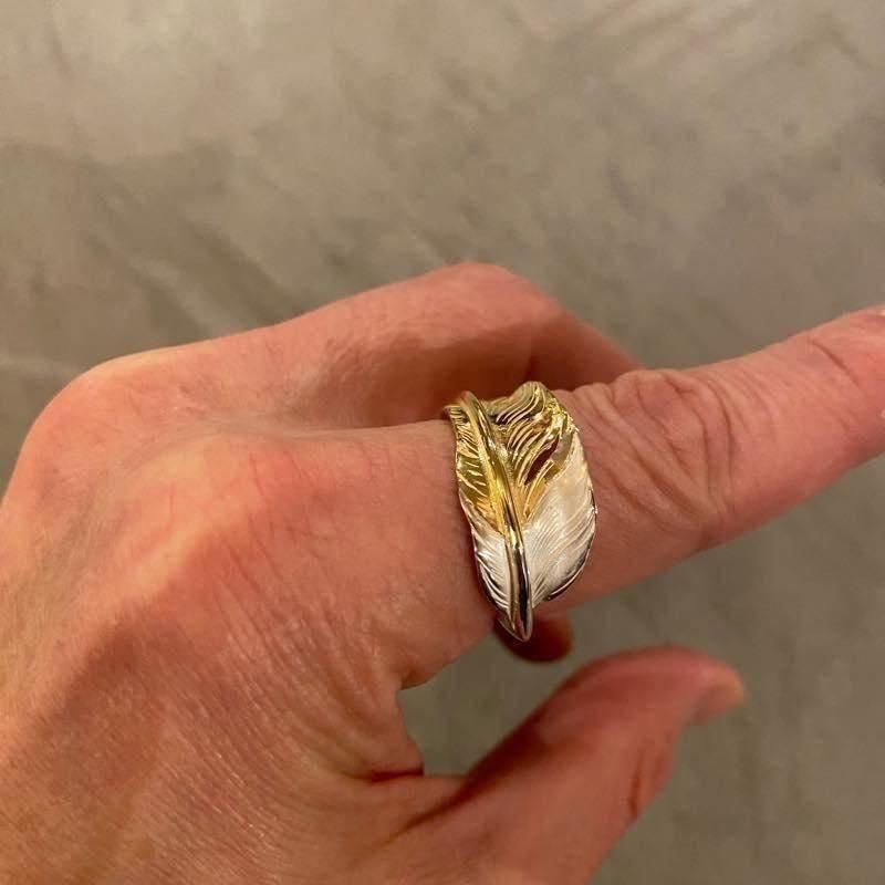 18Kゴールドアクセントにした風切りフェザーリングになります。経年変化に伴って独特な表情を楽しめます。