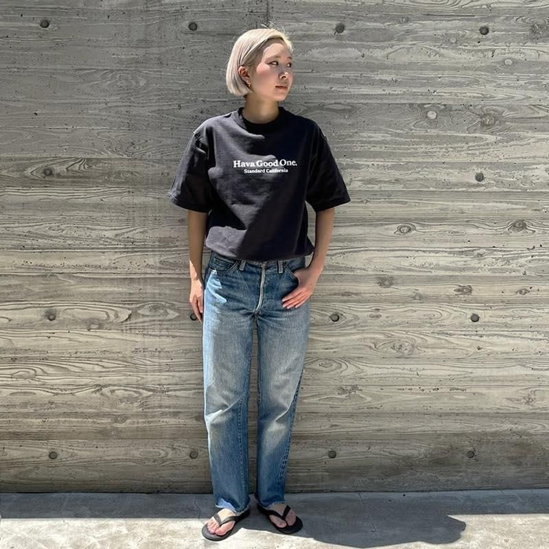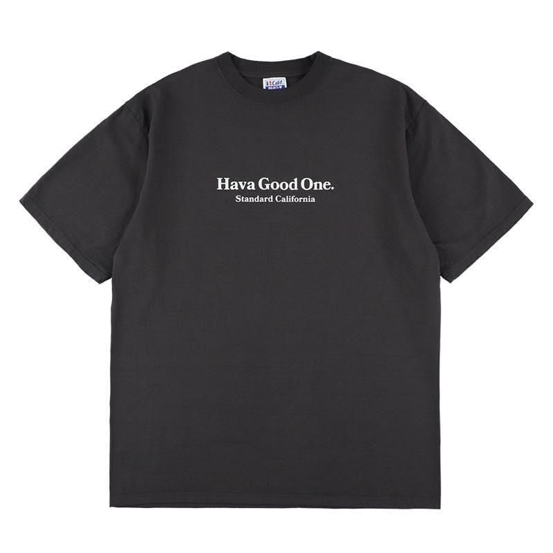 Standard CaliforniaオリジナルのロゴTシャツです。 Standard Californiaのキャッチコピーでもある "HAVA GOOD ONE" をモダンでアカデミックな雰囲気のフォントで落とし込みました。 ボディは丈夫で型崩れしない生地感と、サイズバランスが好評のヘビーウェイトの丸胴ボディに、ラバープリントで配しています。 シンプルなデザインながら色気のある大人も着やすいTシャツです。