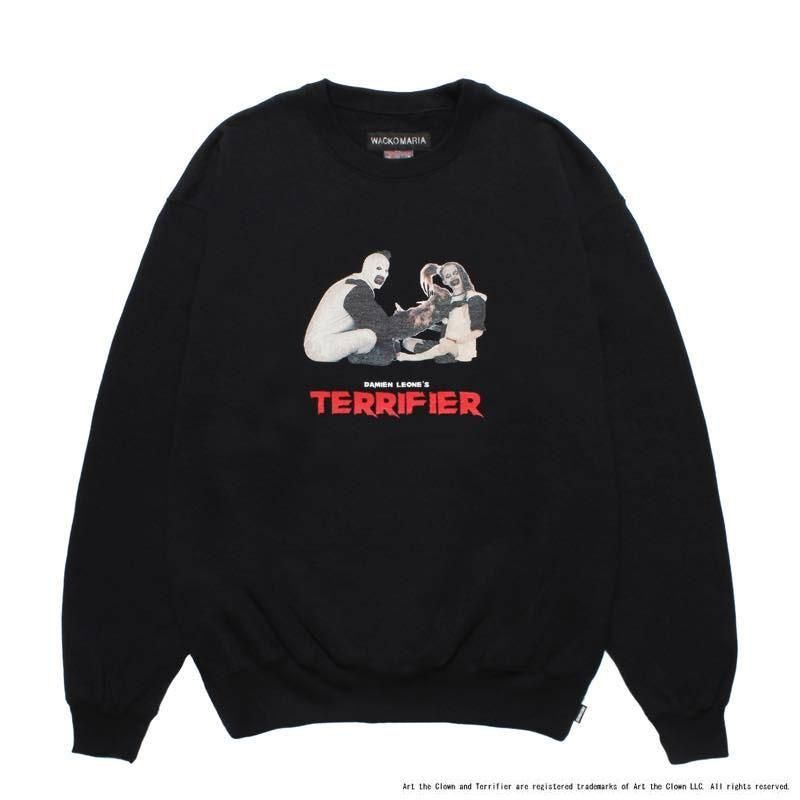 2016年制作のホラー映画「TERRIFIER」とコラボレーションスウェットです。フロントに「TERRIFIER」のグラフィックプリントがバックには刺繍が落とし込まれたデザインに仕上がっております。