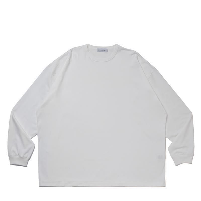 細番手のスーピマコットンと米綿を50/50でブレンドして編み上げた天竺を使用したロンTになります。淡い光沢としなやかさが特徴。オーバーシルエット。