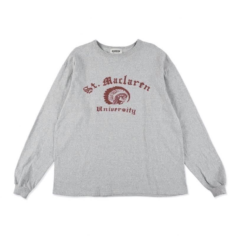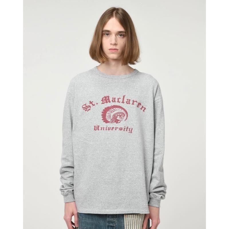 架空の大学 ST.MACLAREN UNIV. のスクールスピリットを受け継ぐ、同コレクションのために製作したロングスリーブTシャツ。