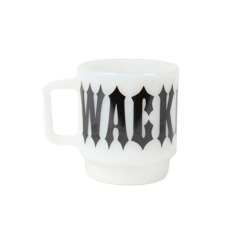 WACKO MARIAのロゴがデザインされたマグカップです。アメリカでファイヤーキングの企画生産に携わった「Mr.Shook」と、日本でファイヤーキングを復刻させた「井置」氏が立ち上げた「オールドミルクガラス」製のMILK GLASS MUGを使用しております。