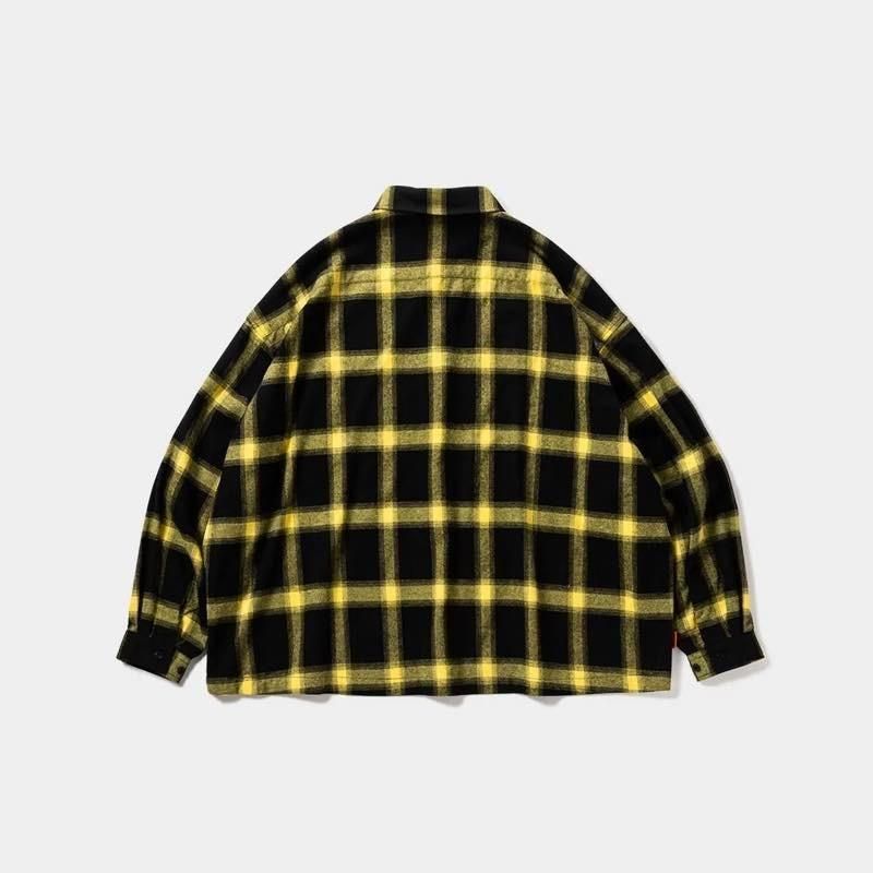 微起毛のチェック生地を使用した長袖ボタンアップシャツ。 フロントオープニングにはロゴ入りボタンを使用。 左胸にはロゴ刺繍入りパッチポケット付き。 袖口はイッテコイ仕様で、2箇所のボダンで袖口のフィット感の調節が可能。 背面ヨーク下左右にギャザーを入れやや丸みのあるシルエットに。 身頃の丈は後ろ中心に向かって僅かに長くなるデザイン。 生地の各パーツは柄合わせされた縫製。 右下シームにオレンジのピスネーム入り。