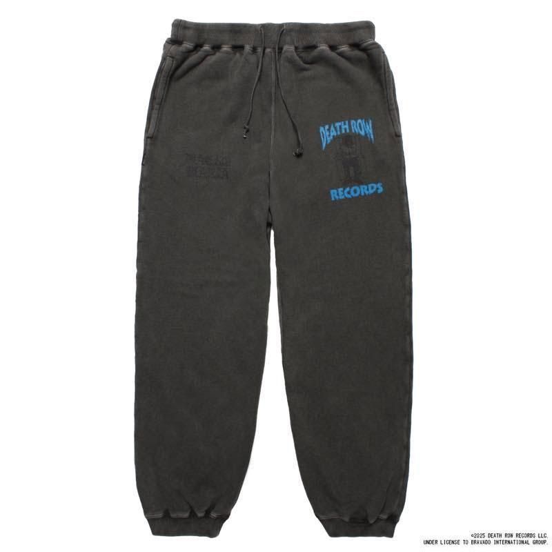 1991年アメリカ・カリフォルニア州で設立されたヒップホップ・レコードレーベル「DEATH ROW RECORDS」とコラボレーションにより、製作されたミドルウェイトのスウェットパンツになります。左腿にWACKO MARIA、右股にDEATH ROW RECORDSのオリジナルグラフィックがプリントで配されております。ガーメントダイ加工が施されたムラ感のある生地表情に仕上がっております。コラボレーションならではの1本に仕上がっております。