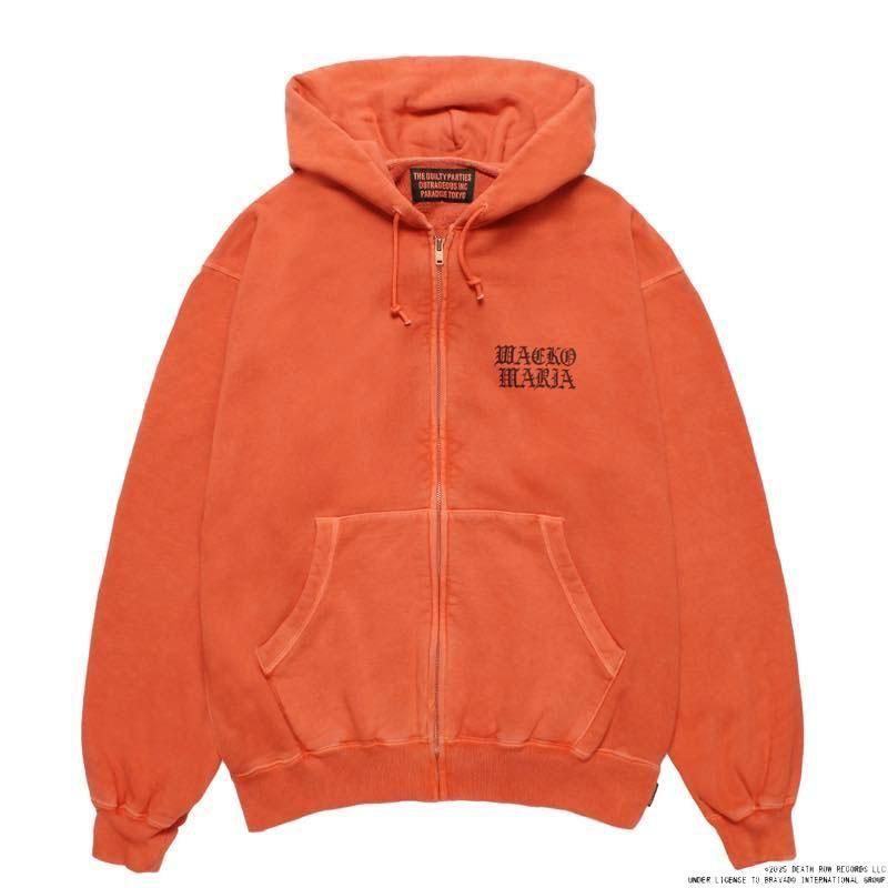 1991年アメリカ・カリフォルニア州で設立されたヒップホップ・レコードレーベル「DEATH ROW RECORDS」とコラボレーションにより、製作されたミドルウェイトのジップアップパーカーになります。フロント左胸にWACKO MARIA、バックにDEATH ROW RECORDSのオリジナルグラフィックがプリントで配されております。ガーメントダイ加工が施されたムラ感のある生地表情に仕上がっております。コラボレーションならではの1着に仕上がっております。