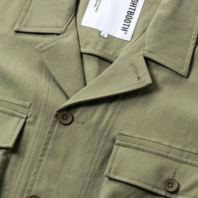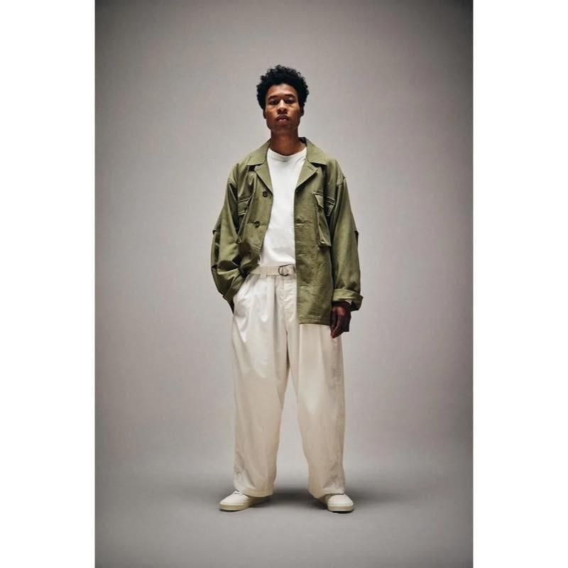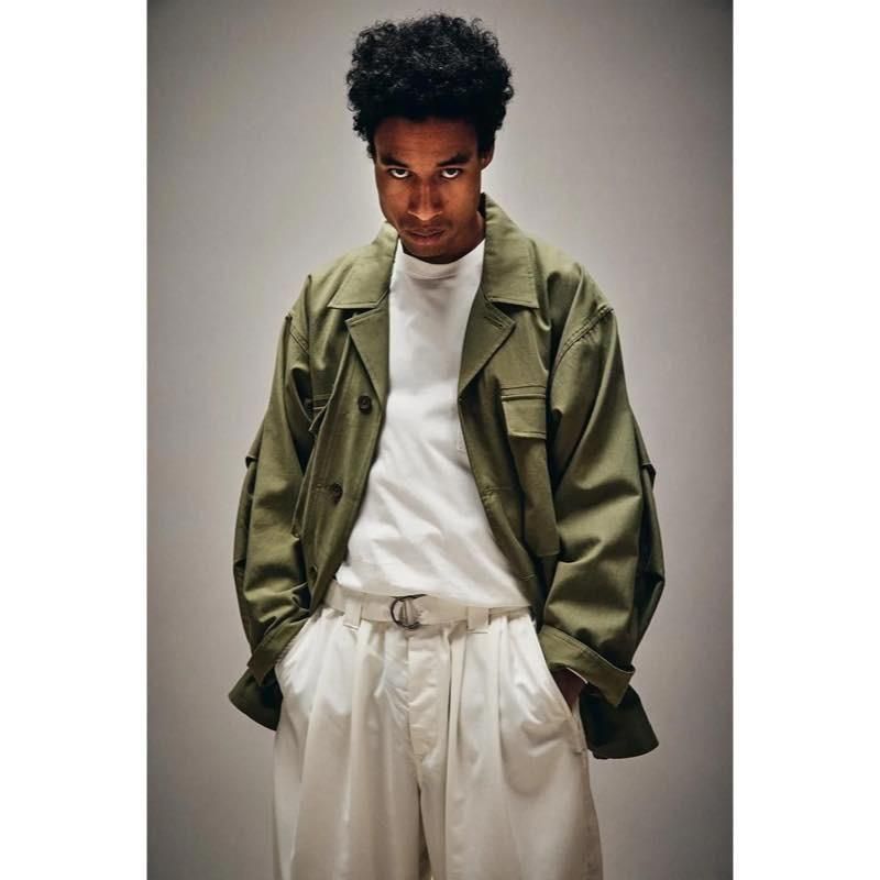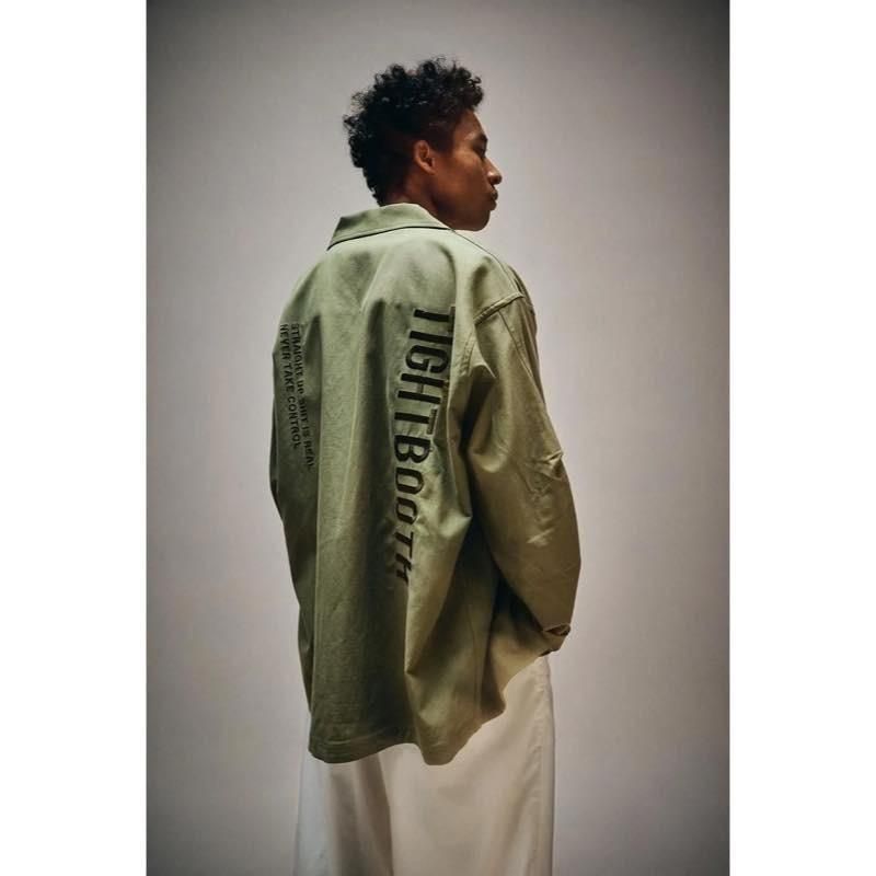 背面に大きくロゴ刺繍を施したミリタリーシャツジャケット。 通常のミリタリージャケットよりゆったりとしたオーバーサイズシルエット。 テンセル混の生地で柔らかな着心地に。 胸元のフラップボタンはマチ付きの大きめサイズで、ポケットの上部にはロゴとメッセージ入りのテープを配置。 バックヨーク内側にはフラシ付きでチープ感のないデザイン。 前身頃左下にはロゴパッチを配置し、各所のボタンにはロゴ入りのものを使用。