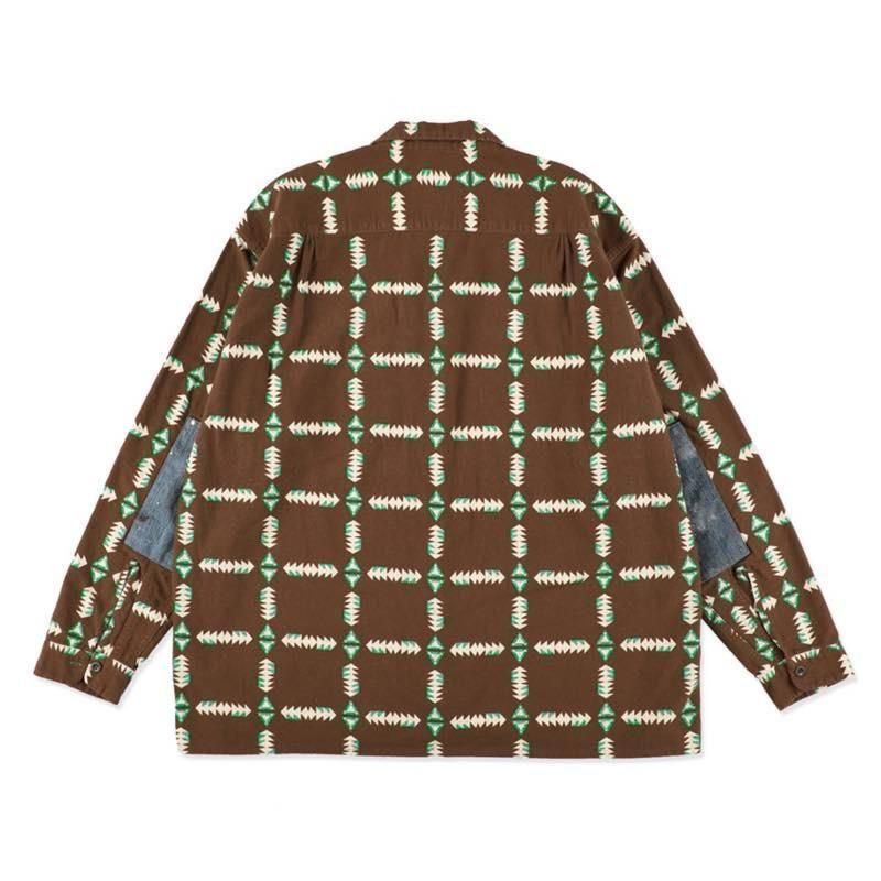 オールドのプリントネルをイメージして仕立てたナバホ柄テキスタイルに、当時のオールドディテールを盛り込んだ90sフィット。無駄とも映る細部の再現にこそ魂を込め、柄のズレまで追い込んだ表情で、懐かしさと今を同居させた新しいプリントネルシャツ。 ビンテージでも稀に見る、着古され肘が裂けたシャツを、手元の穿かなくなったデニムでリペア、そんな実在するリペアの物語をモチーフに再現。
