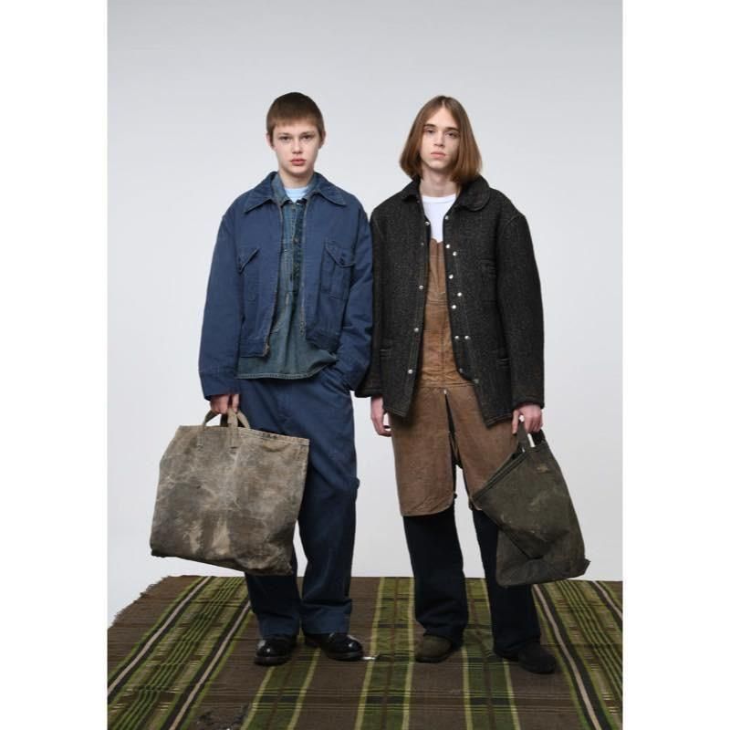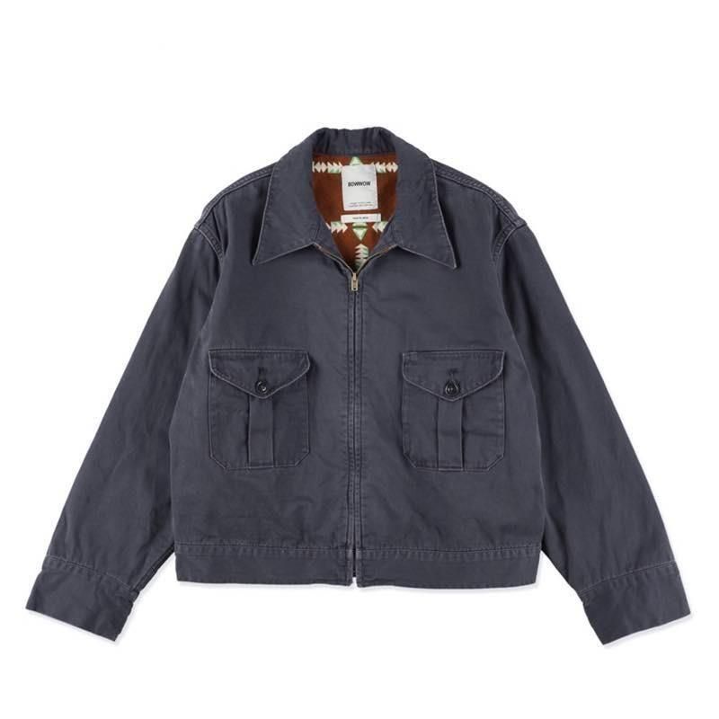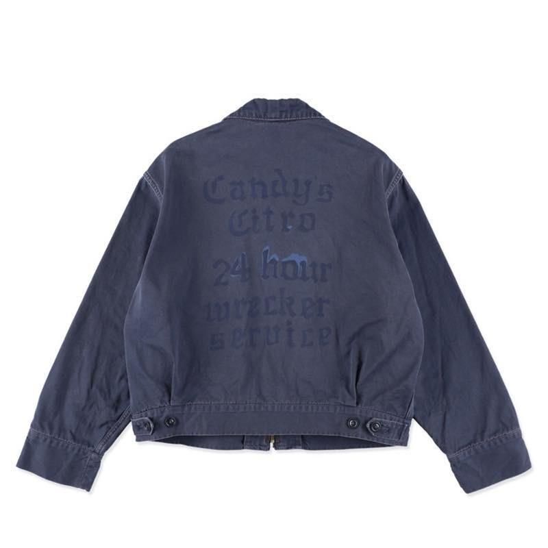 戦時下の服飾生産需要拡大によりワークウェアブランドが急成長し、クオリティが完成期を迎えた1950年代。本作は、その時代のワークジャケットをイメージして製作した一着。若干短めの丈で設計されたボディは、当時アメリカで24時間営業のレッカー業を営む会社の作業着をモチーフに構築。おしゃれな社風のその会社が特注で仕立てた設定で、裏地にはナバホ柄のプリントネル生地を採用。ワークウェアの無骨さと、遊び心あふれるカスタム感が融合したデザインとなり、重労働作業による経年変化加工感も合わせて表現。