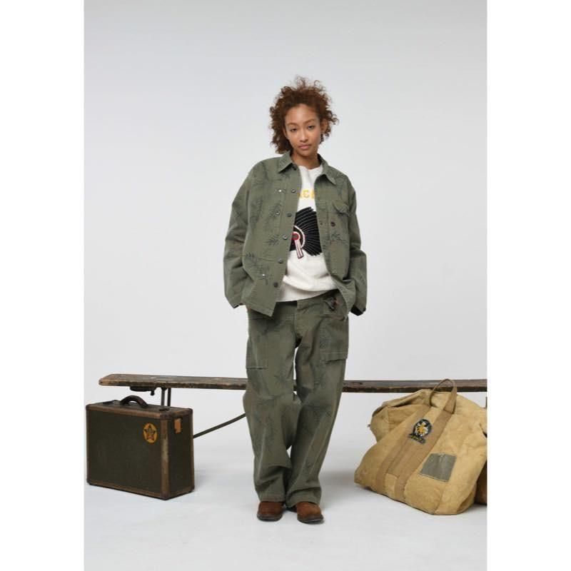 架空の大学 ST.MACLAREN UNIV. のチームスピリットを象徴する、インディアンヘッドのワッペンを前身に配したクルーネックスウェット。1940~50年代のカレッジウェアをベースに、当時の学生が誇りを胸に過ごしたキャンパスライフをイメージして製作。かなり肉厚でドライな質感のスウェット生地をオリジナルで編み立て、着込みによって生まれたフェード感や細かな毛羽立ちを再現。スタジャンとのセットアップはもちろん、単体でも存在感を放つ一枚。ヴィンテージカレッジカルチャーの空気を現代のスタイルに落とし込んだBOW WOWらしい提案。