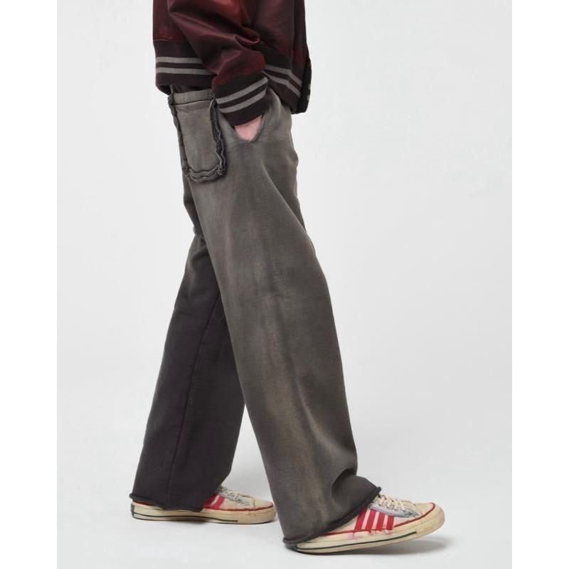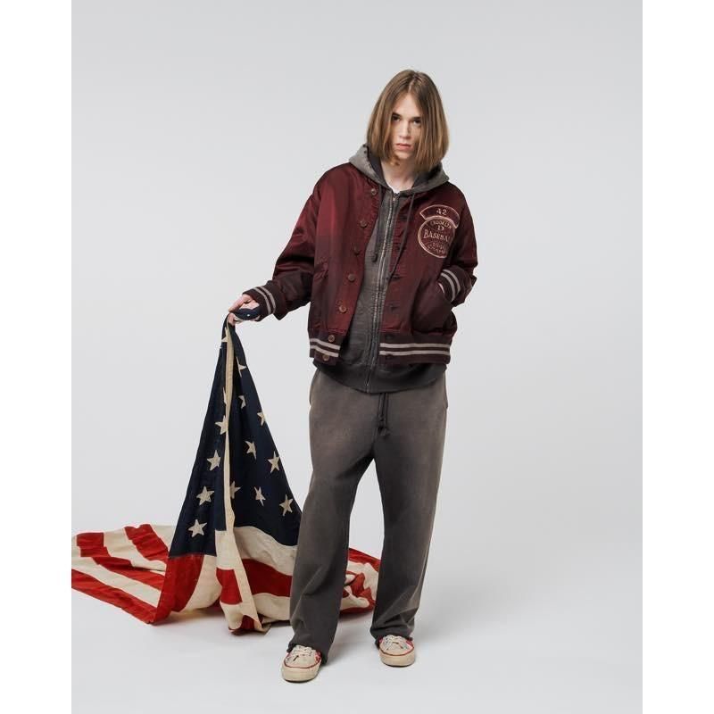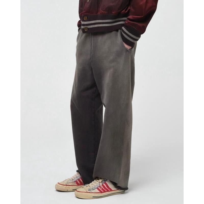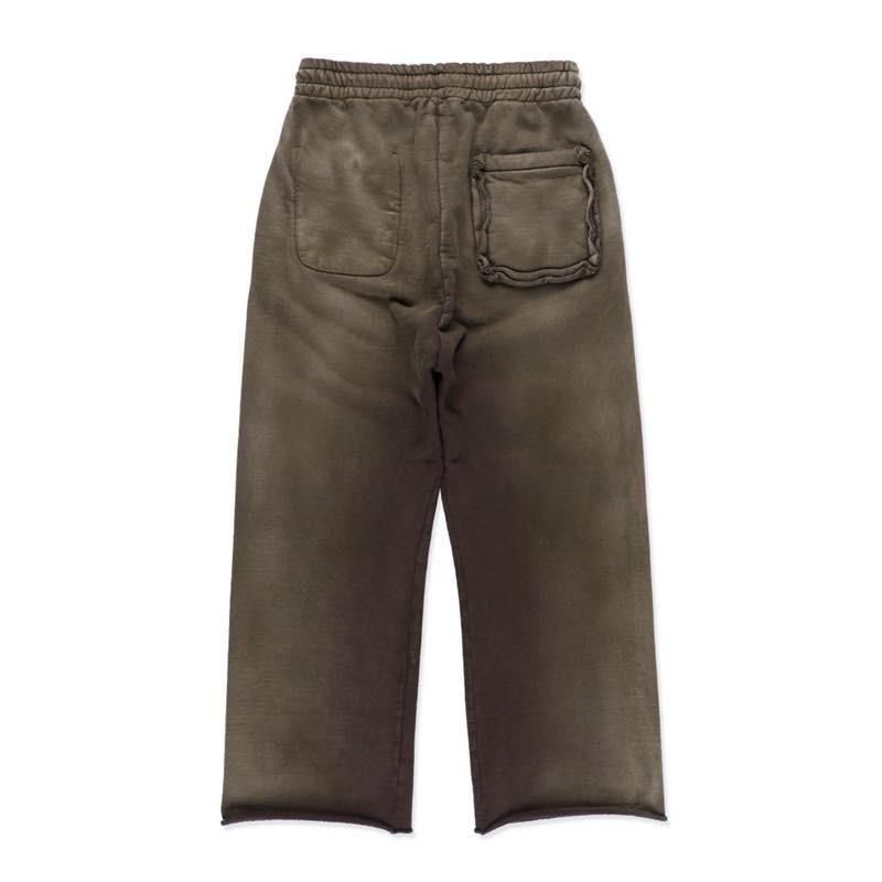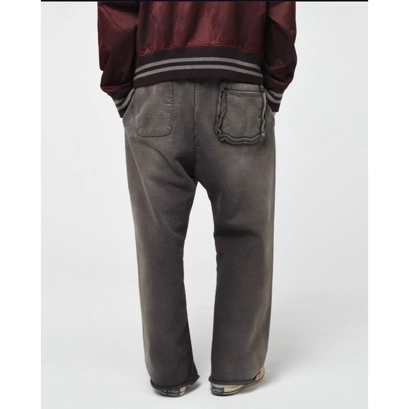 CROOKLYN Dの架空チャンピオンパーカと組で物語が成立するスウェットパンツ。パッチを排したミニマル仕様に、セットアップで着倒されたかのようなヤレと汚れを加工で再現。絶妙なチームカラーのダークブラウンがスタイリングの幅を広げ、オールシーズン対応の肉厚スウェットとシルエットで存在感を放つ一本。