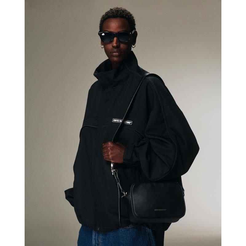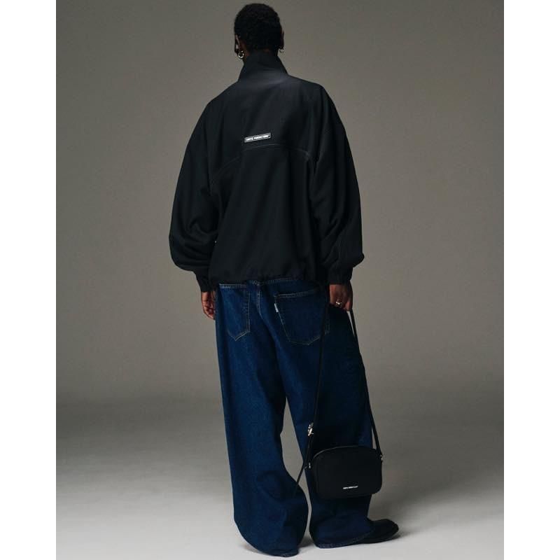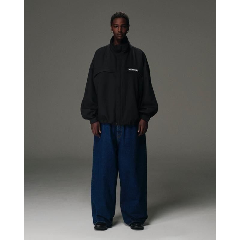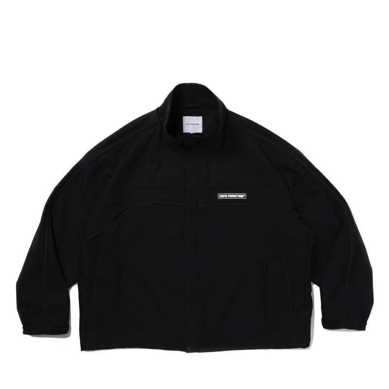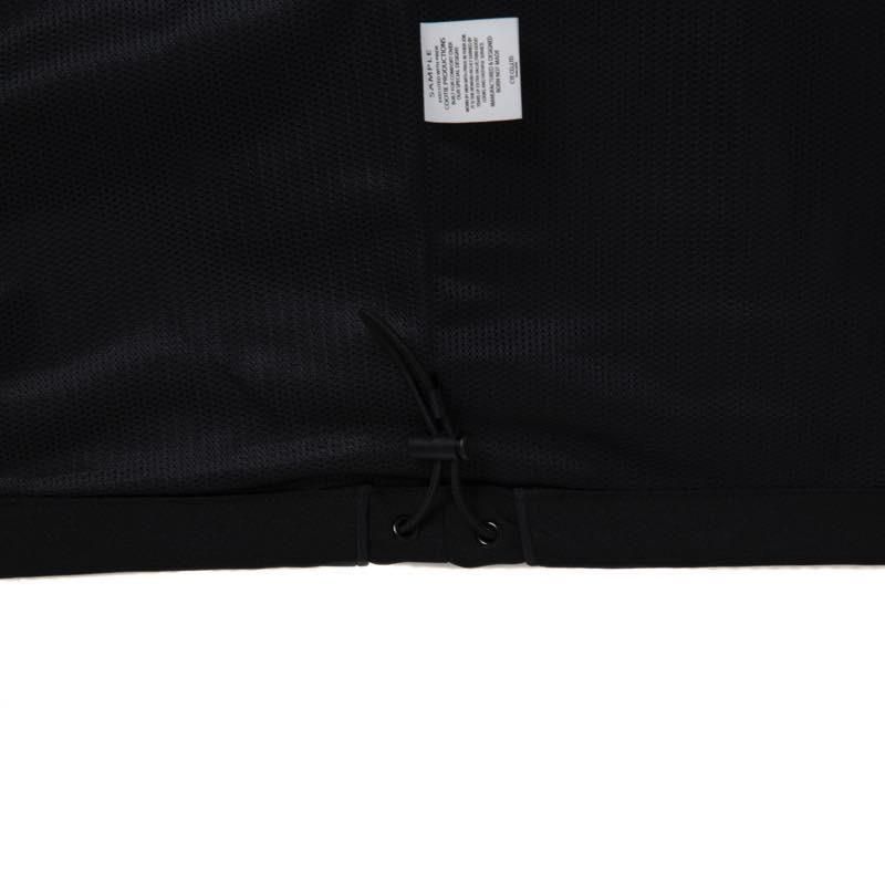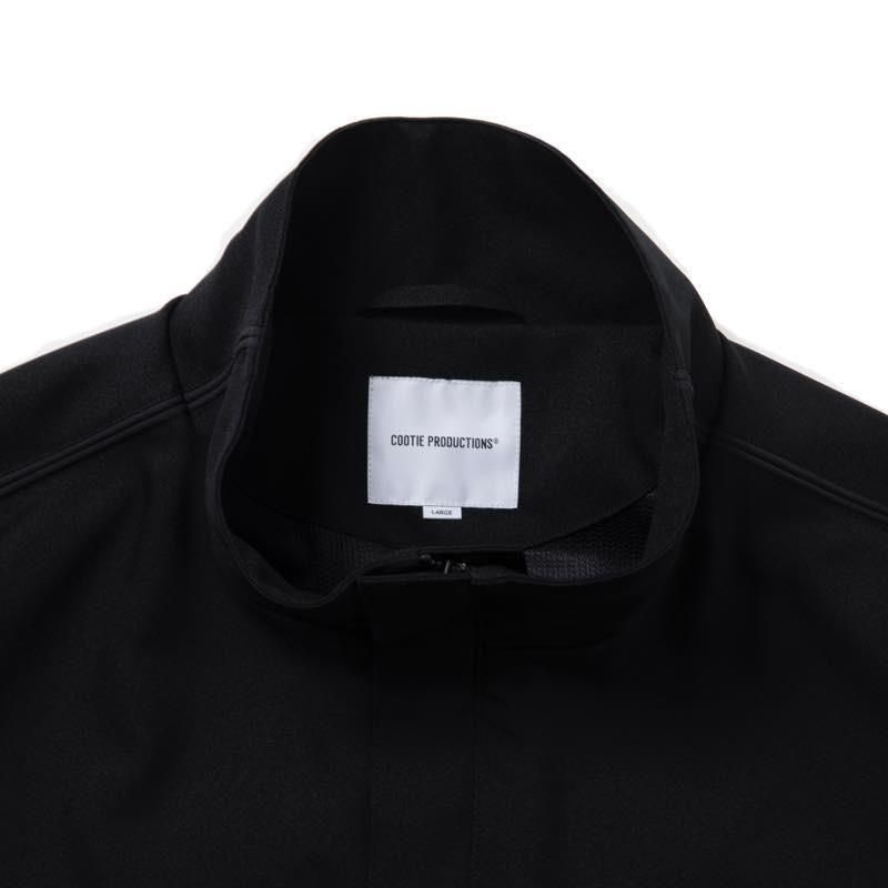 制電糸を入れることにより帯電防止に優れたストレッチポリエステルツイル地を使用したトラックジャケットになります。総裏メッシュ仕様。裾にドローコードが付く。ワイドシルエット。