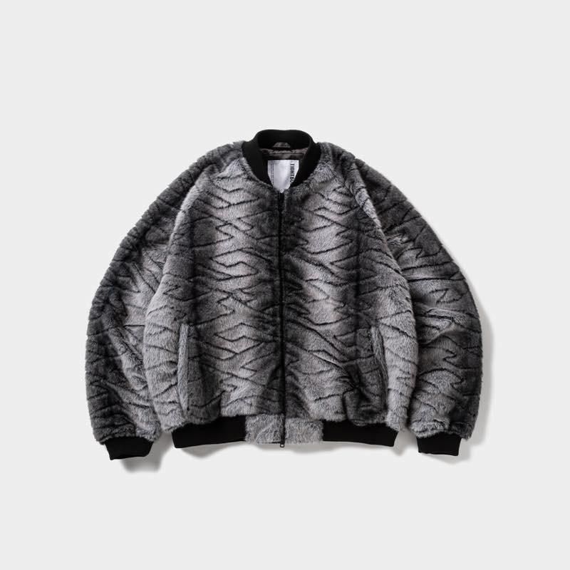 MA-1シルエットを採用した中綿入りのファージャケット。 滑らかな肌触りのフェイクファー生地に、オリジナルのT総柄でキルティング加工。 フロントのオープニングはタブルファスナー仕様。 フロントポケットはファスナー付きで、身頃内側には大きめで便利なメッシュのインナーポケットも搭載。 ラグランスリーブデザインで、袖口と裾はリブ仕様。 左身頃のシームにオレンジのピスネーム付き。 襟元内側にはハンガーループ付き。