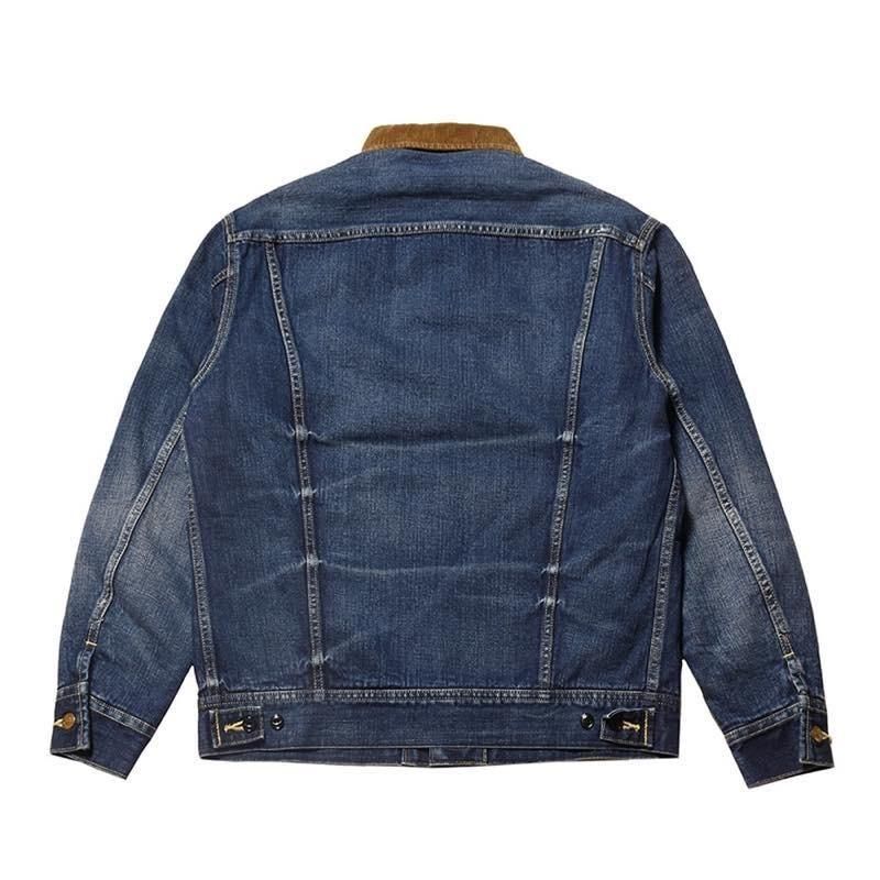 保温性を確保するためのブランケットライニングとコーデュロイ地の襟が特徴的なデニムジャケットです。