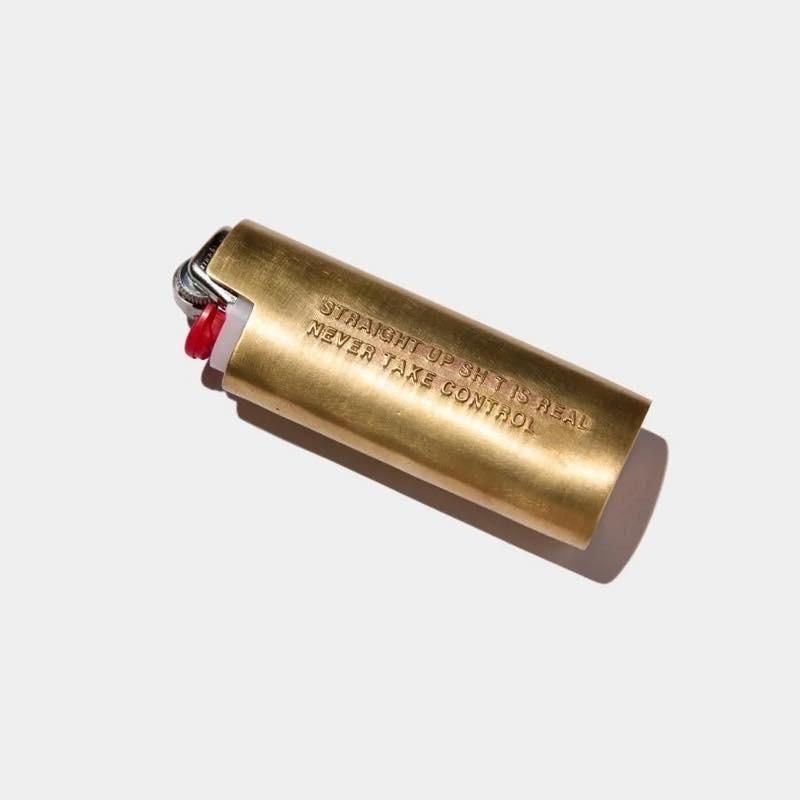 エンボスロゴを施した真鍮製のライターケース。Bic J26レギュラーライターに合わせたサイズ。お手入れしながら綺麗に使うのは勿論、真鍮特有の経年変化を楽しむのもおすすめ。