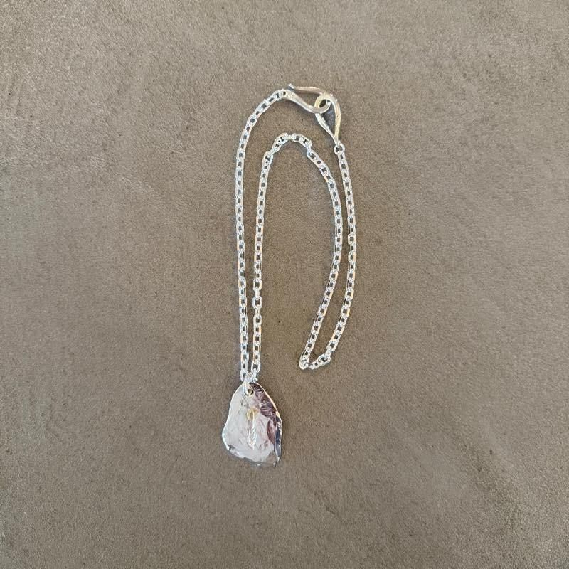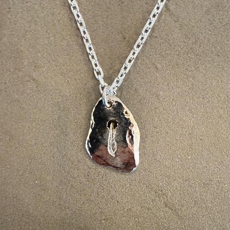 KAZEKIRI FEATHER STAMPED PENDANT No. 55 (18K GOLD ACCENT)のコンビネーションネックレスです。INFINITY HOOK CABLE CHAIN(L)サイズの50cmチェーンを使用しております。